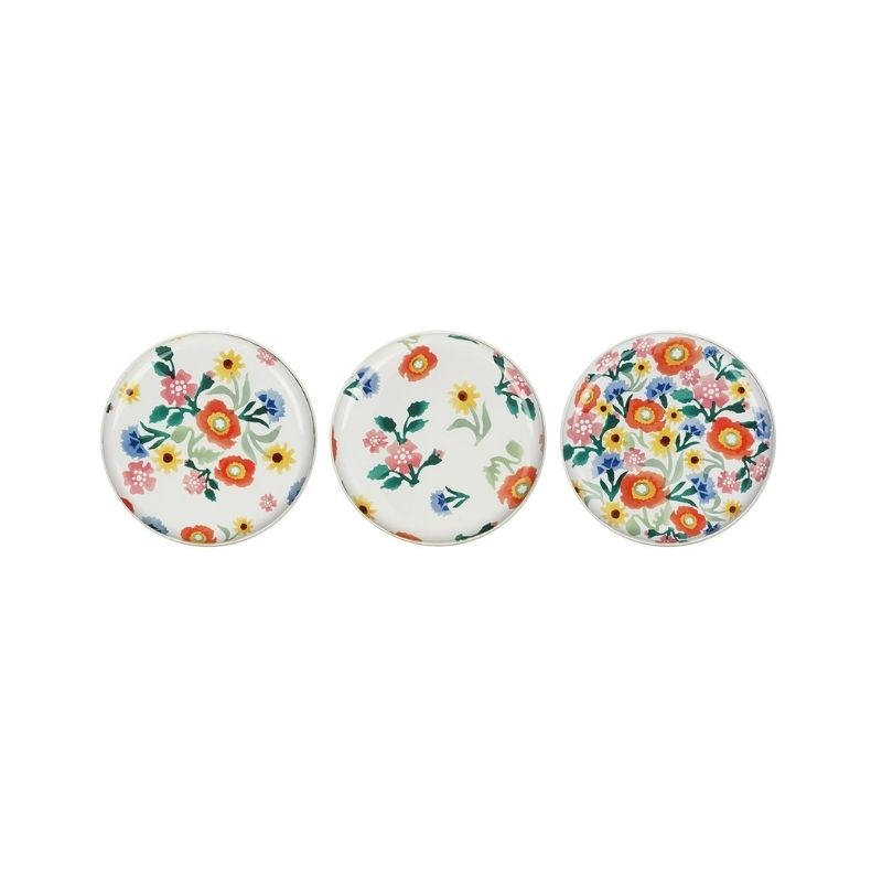 The Emma Bridgewater Poppies Tin Caddies is a three piece set decorated with various poppy patterns.