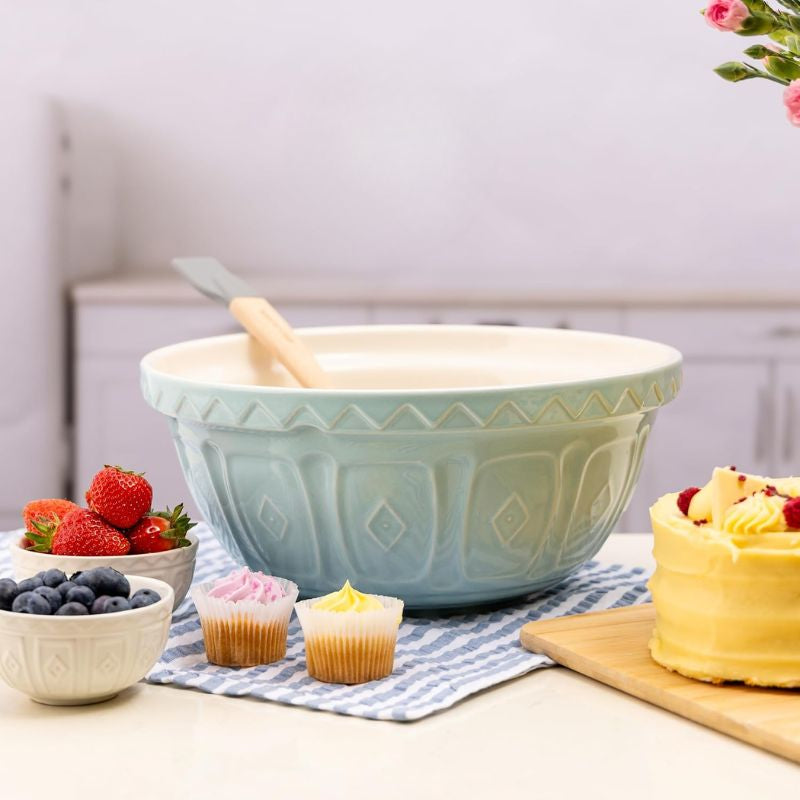 The Mason Cash Powder Blue Colour Mixing Bowl is from the Colour Mix range which have the same classic design as the Mason Cash Original Cane Mixing Bowl.