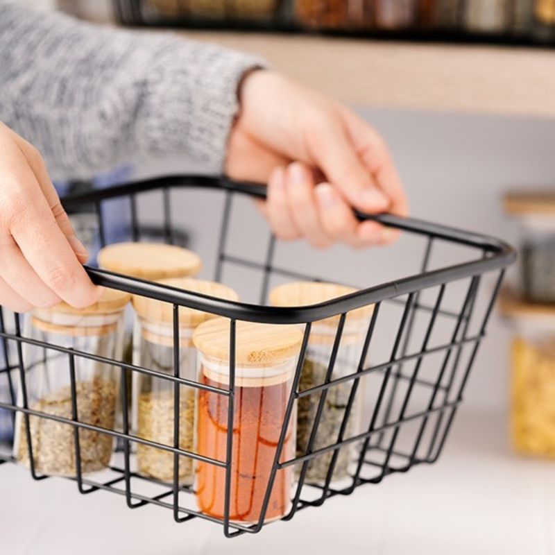 Kate’s Medium Black Wire Basket is a practical storage option for your home. The open wire grid keeps contents visible and ventilated, and the rounded rim makes it easy to lift. Fits jars, packets, cleaning supplies and other mid-size items in the pantry, kitchen, bathroom or office.