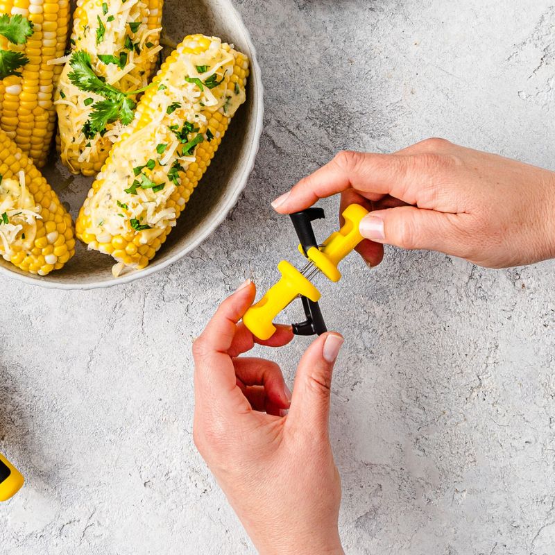 A practical set for serving corn at the table, BBQs, or summer meals.