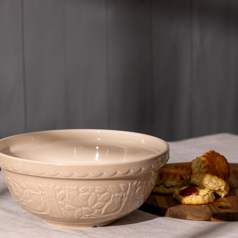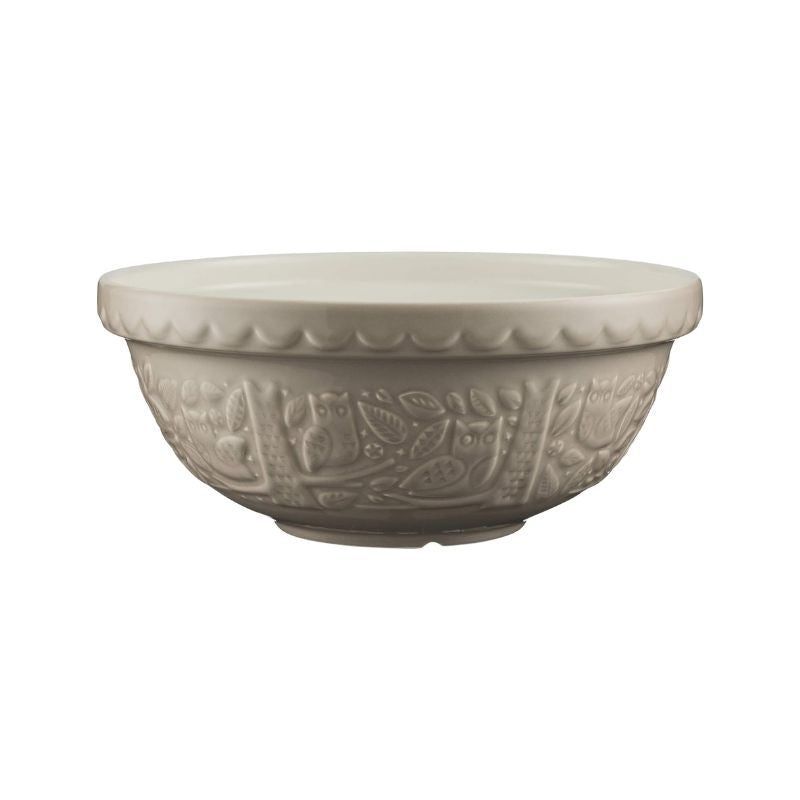 The Mason Cash In The Forest Owl Mixing Bowl in Stone is perfect for cakes and biscuits. It's light enough to hold in one arm while mixing your cake batter but also sturdy enough to use on a counter top without it moving around.