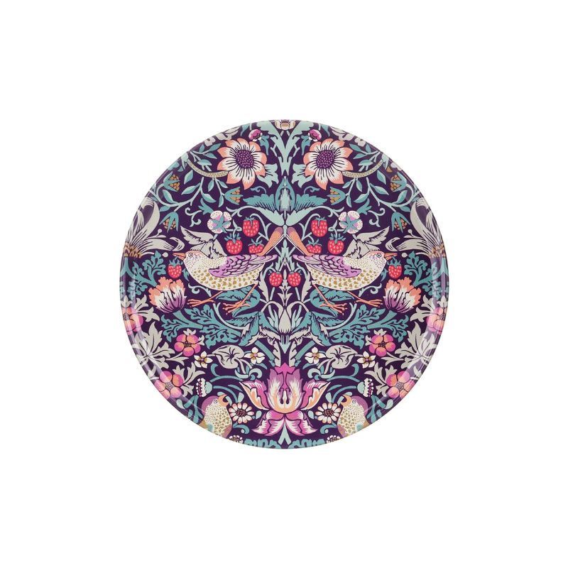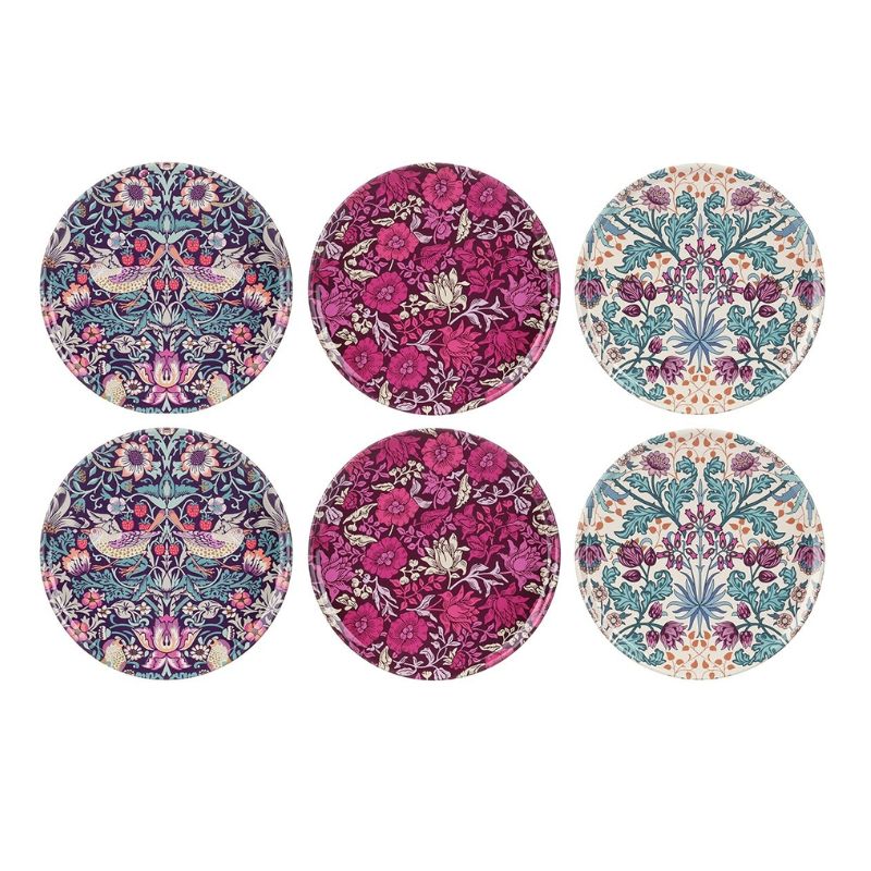 The Arts & Crafts Tin Coasters uses William Morris's recognisable designs, including the classic Strawberry Thief print.