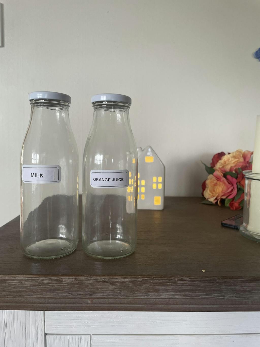 These bottles are just what I wanted for our bnb unit. Excellent size for the milk and orange juice.The lids seal on nicely maintaining freshness. After being unable to find what I wanted locally I was so happy to purchase these bottles. Arrived with no damage and I was happy to see I can purchase extra tops if I need to down the track.