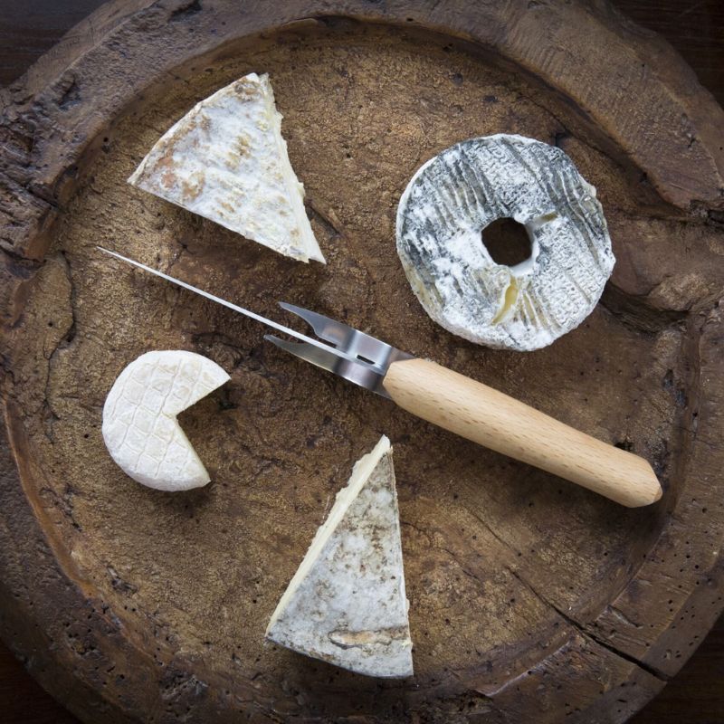 The matching stainless steel fork can be used to hold the cheese for cleaner slicing and can also be used for serving. It doubles as a rest for the knife when not in use, making it a practical addition to any cheese board or grazing platter.