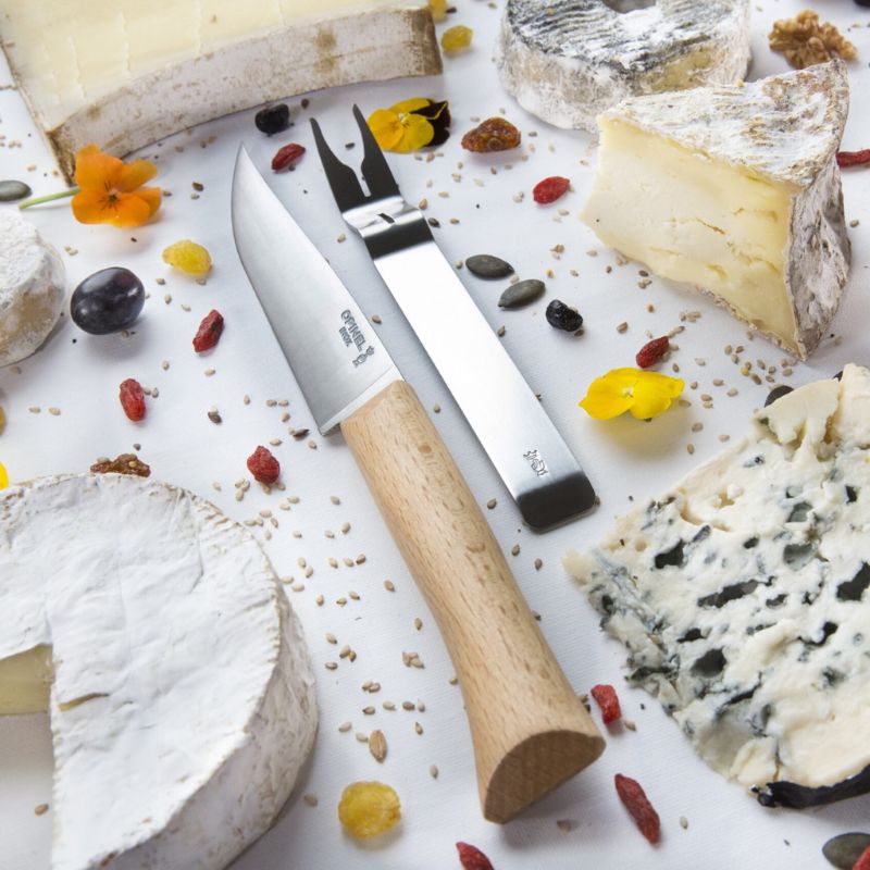 The Opinel Cheese Knife & Fork Set is a well-crafted duo designed for cutting and serving a wide range of cheeses. The stainless steel blade is sharp, durable, and easy to maintain, while the smoothly finished beechwood handle offers a comfortable grip.